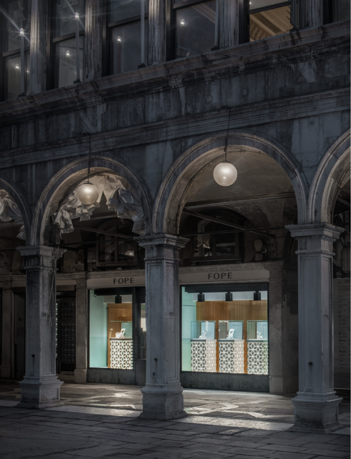 La prima boutique FOPE ha aperto nel 2015 in piazza San Marco: un luogo magico legato a una tradizione di arte, commercio e apertura al mondo. Nel 2019 è toccato a Londra, nell’iconica Old Bond Street, cui poi sono seguite Isola Bella, Kuala Lumpur e Dubai.